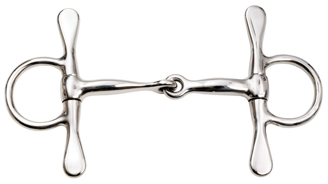 Stainless steel with single jointed mouthpiece and full cheeks. Similar to a Tom Thumb, but with fixed rings.
