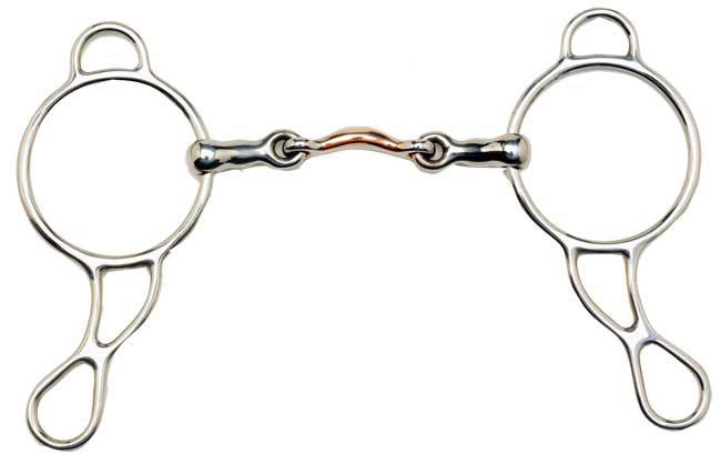 The double joint delivers prevents the harsh "nutcracker" action and applies less palate pressure than the single joint of the Pessoa. The lozenge is copper coated stainless steel to encourage acceptance of the bit.