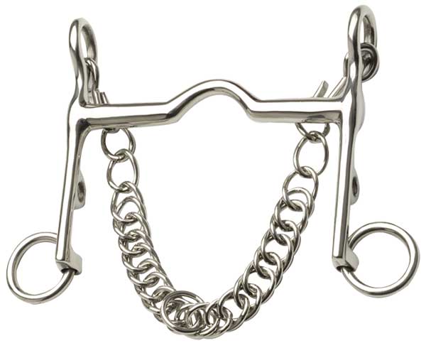 Stainless steel fixed cheek weymouth with low cambridge ported mouth. Can be used