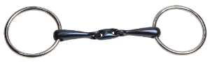 This stainless steel training bit has loose rings and a "lozenge" shaped joint that sits flat on the tongue with rein pressure.