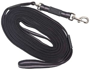 The thickly padded, two tone weave construction of this lunge rein makes lungeing softer on the hands. This lunge rein features a swivel to help prevent tangling.