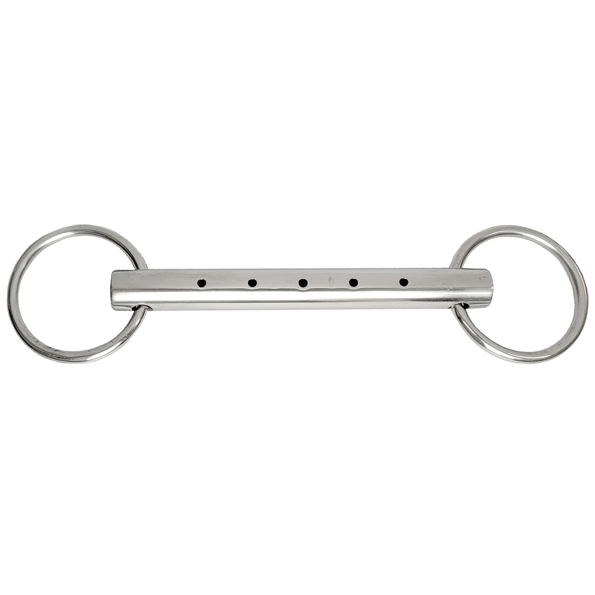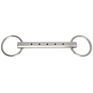The pipe bit is a strong bit that should be used with care. The hollow aspects prevent the horse from taking the contact. It is quite rigid and should only be used once in a while for a specific exercise or need. Stainless Steel.