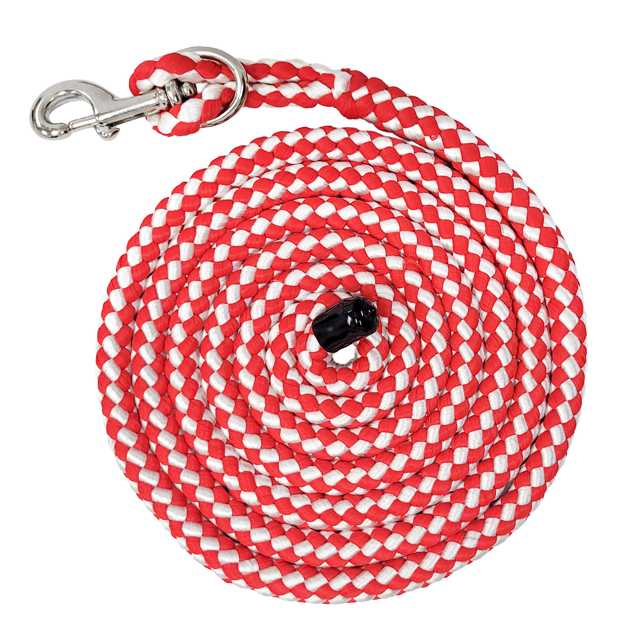 Available in a range of colours, this soft two-tone lead is woven with soft polypropylene rope. Finished with a nickel plated snap.
